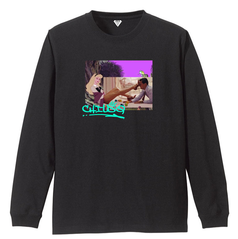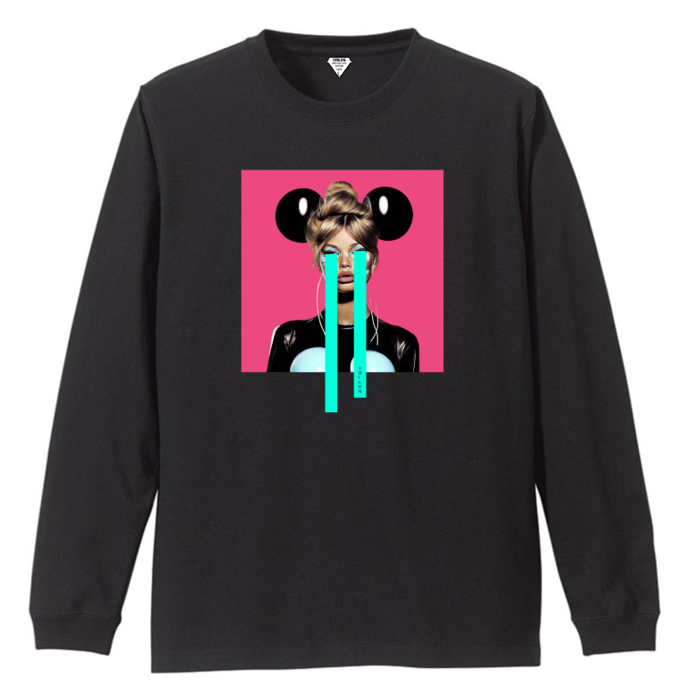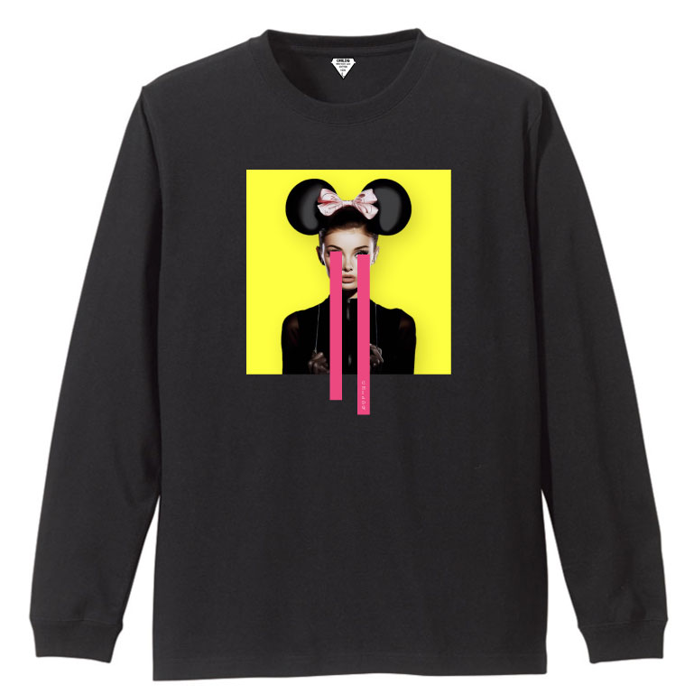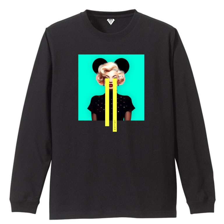 Parody Melting Sleeve Print No3 Long T Shirt Black