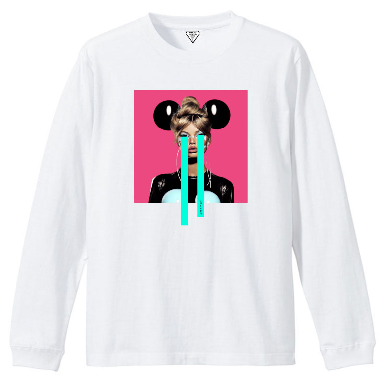 Skull Tattoo Girl NO.25 Long T-shirt White