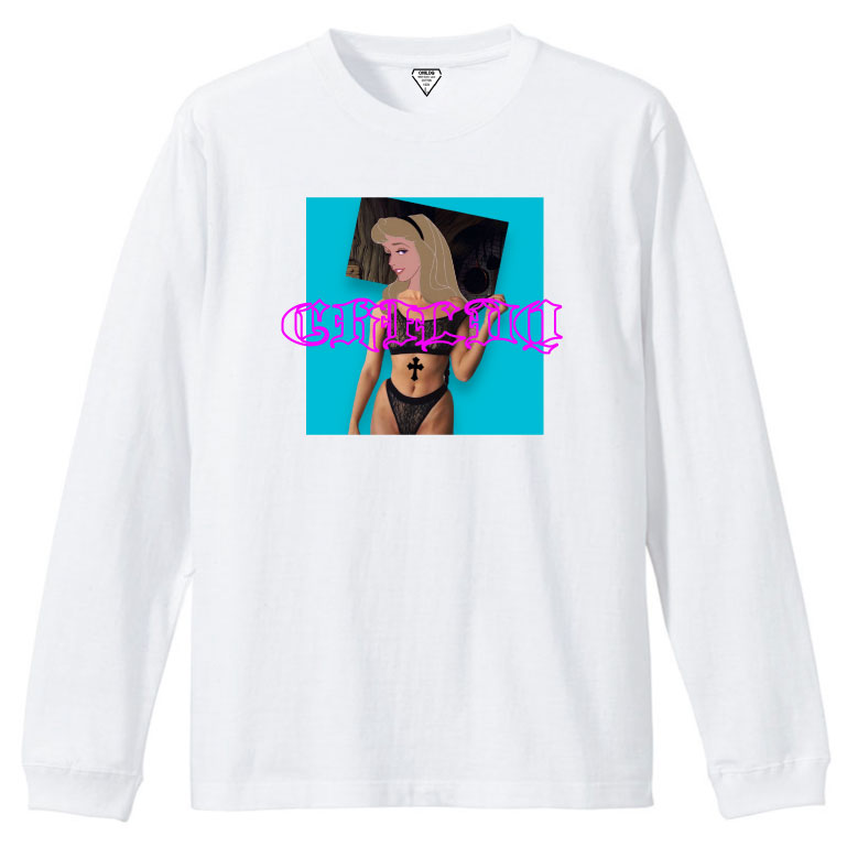 Skull Tattoo Girl NO.24 Long T-shirt White