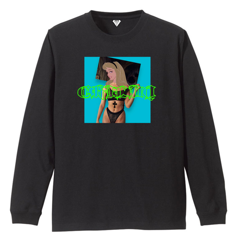 Skull Tattoo Girl NO.25 Long T-shirt Black