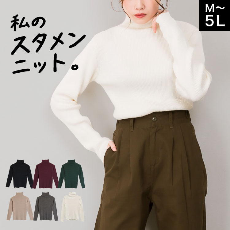 【M~5L対応】ニット タートルネック リブ 綿100% レディース 長袖 私のスタメンニット。タートルネックリブニット 洗える ...
