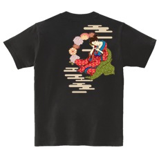 和柄Tシャツ 風神 [レディース半袖 (バックプリント)]