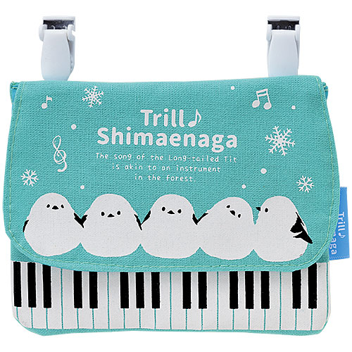 トリル♪シマエナガ ポケットポーチ(ピアノ鍵盤柄)【ポケットティッシュケース付き移動ポケット】