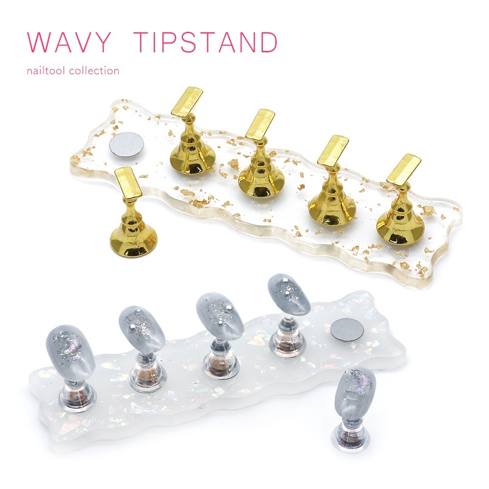 【ネコポス送料無料】ネイルアート用 ウェービーチップスタンド マグネットタイプ 5個セット[ゴールド/オーロラ]全2色