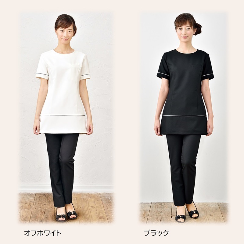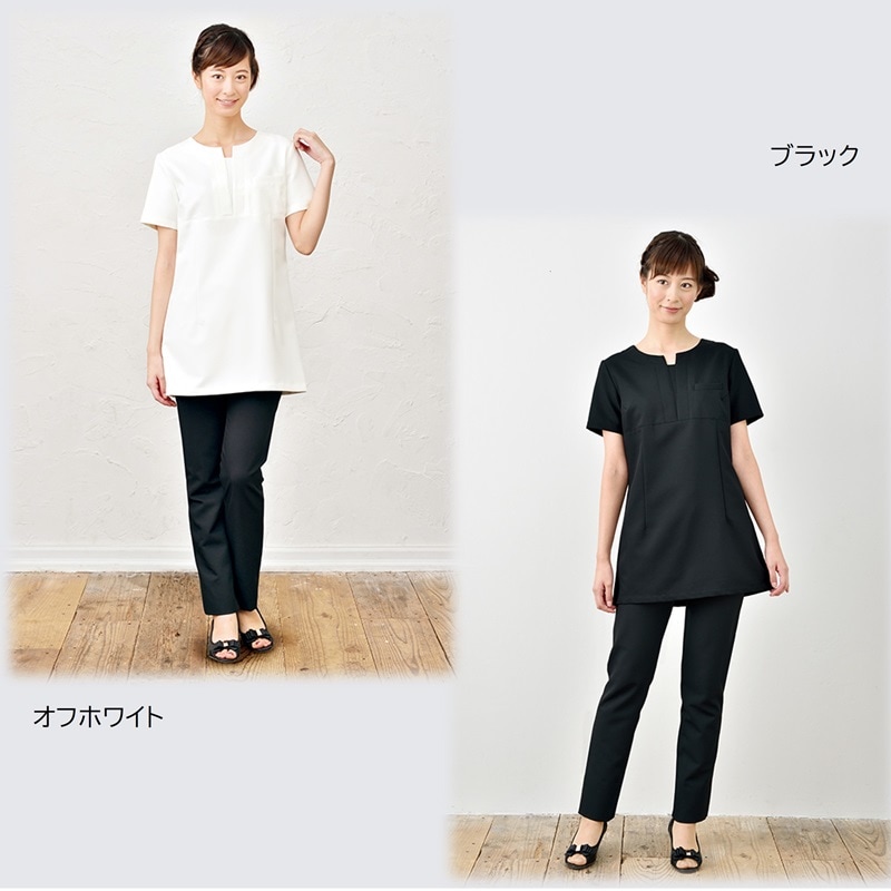 E-3114 ワンライン チュニック (2色 ブラック ライトベージュ) SHIROTA(シロタ)