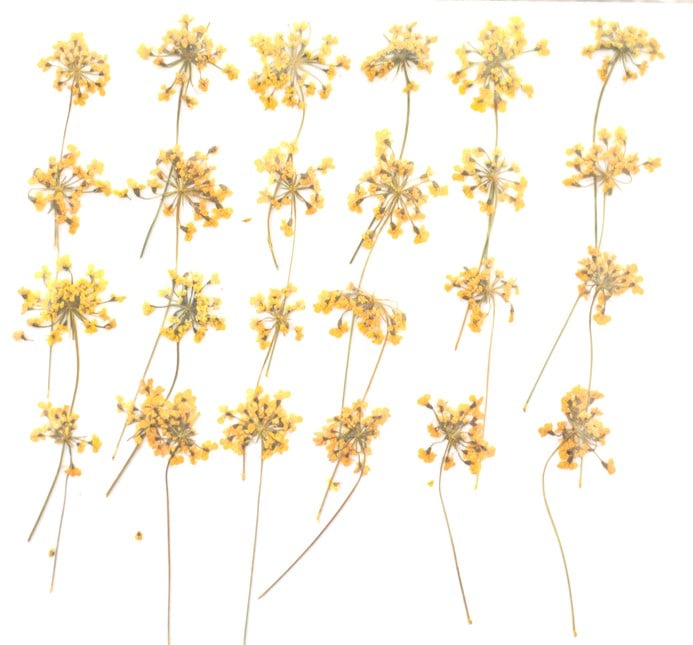 1-202HY 押し花 レースフラワー柄付 黄色染め 24輪