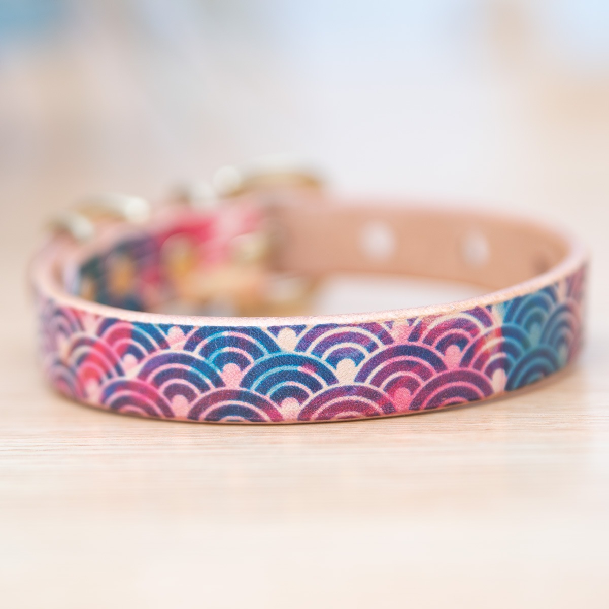 Framer アートなグラフィック本革首輪 青海波オーロラ 真鍮無垢金具 サイズSS~L ベルト幅16mm #23483