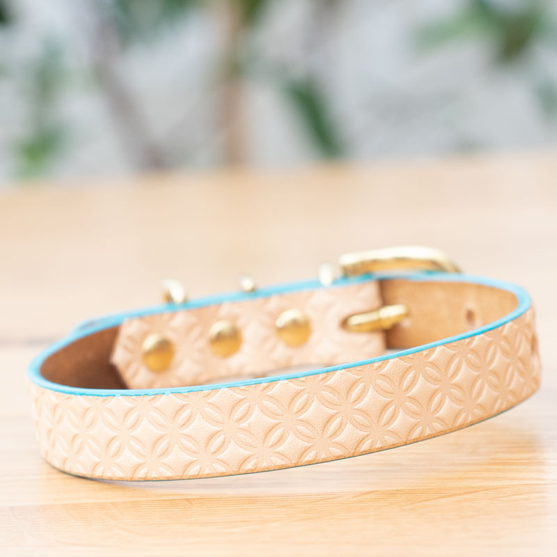[#A8897]サクラ犬具製作所 本革 七宝文様 shippo 和柄型押し模様首輪 日本製
