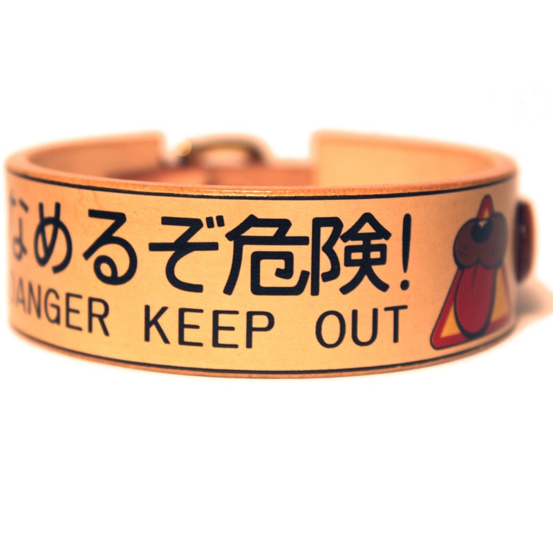 Framer WIDE グラフィック手仕上げ 本革首輪 真鍮無垢金具 サイズSS~LL ベルト幅30mm/40mm 『なめるぞ危険...