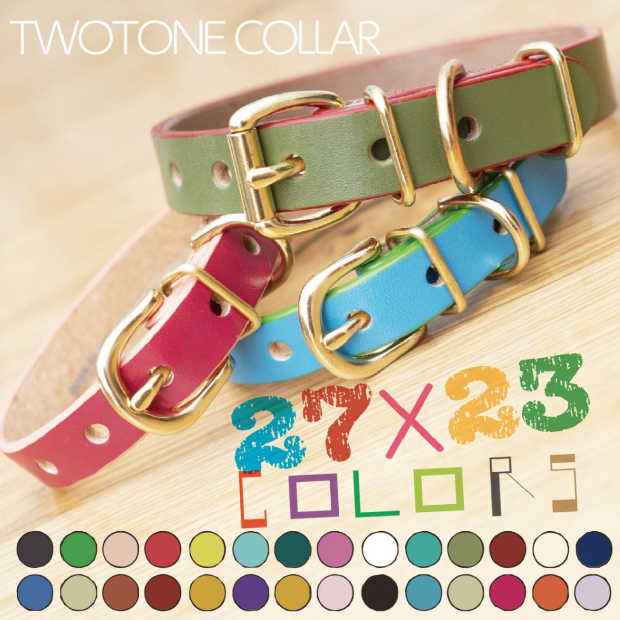 [#TWOTONE]サクラ犬具製作所 本革ツートーンカラー首輪 全27色 X コバ23色(621パターンの組み合わせ) 日本製