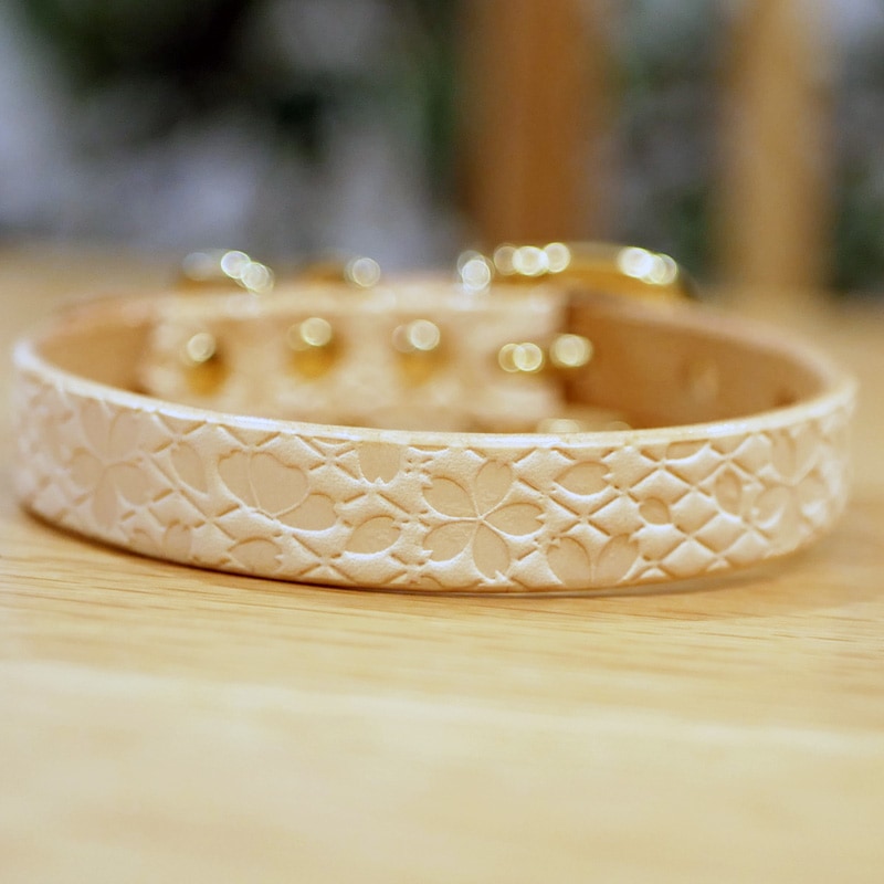 [#A8894]サクラ犬具製作所 本革 桜 菱文様 和柄型押し模様首輪 日本製