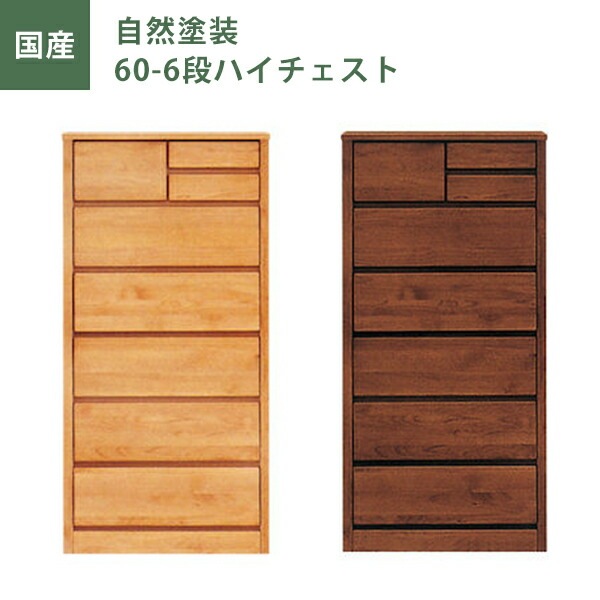 60ハイチェスト チェスト タンス たんす 幅60cm 6段 ナチュラル ブラウン 自然塗装 日本製