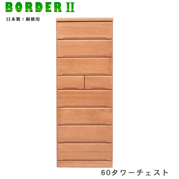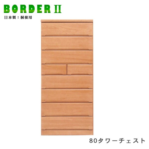 タワーチェスト 幅80cm 高さ180cm タンス ハイチェスト 引出し8段 桐材 木製 ナチュラル 日本製 大川家具 完成品