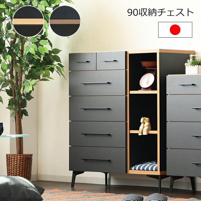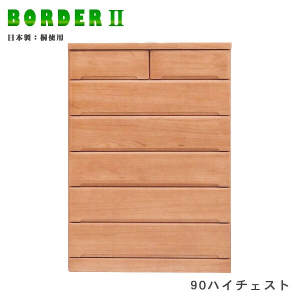 ハイチェスト 幅90cm タンス チェスト 引出し6段 桐材 木製 ナチュラル 日本製 大川家具 完成品