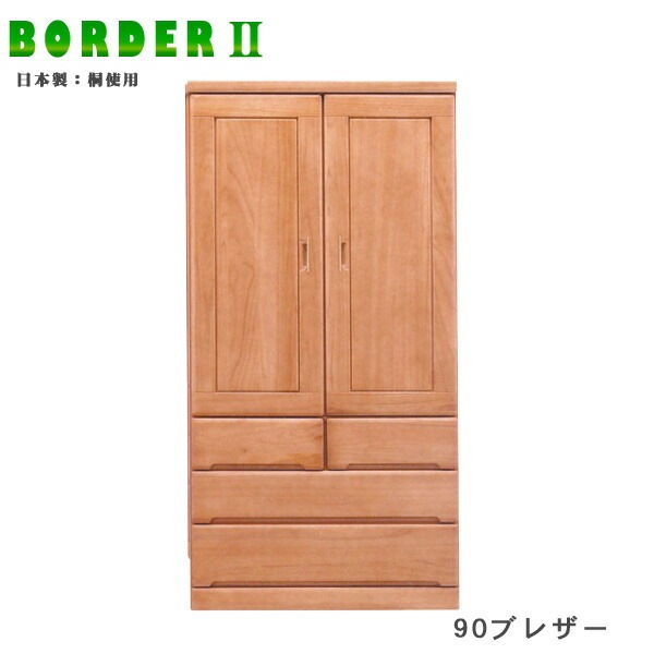 90服吊(重ね) ワードローブ 桐材 国産 ブラウン ナチュラル 日本製 収納家具