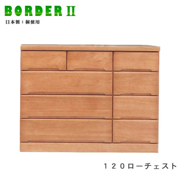 120ローチェスト 桐材 幅120cm 引出し箱組み 長引出しフルオープンレール付き 国産 ブラウン ナチュラル 日本製
