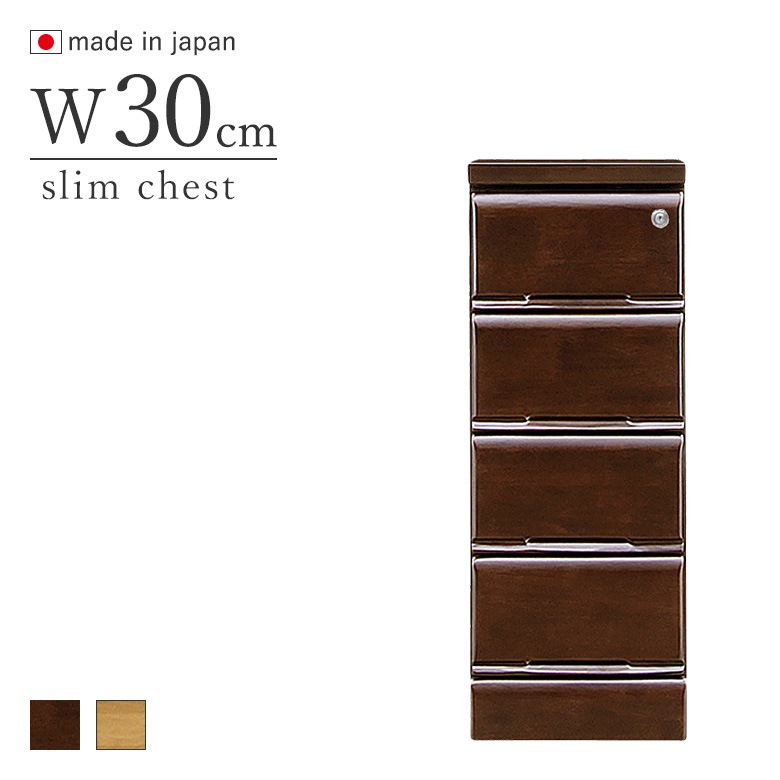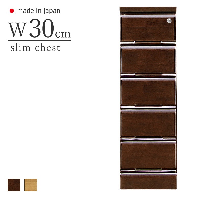 鍵付きチェスト 30-5段 引出し5段 スリムチェスト ブラウン・ナチュラル 日本製 完成品