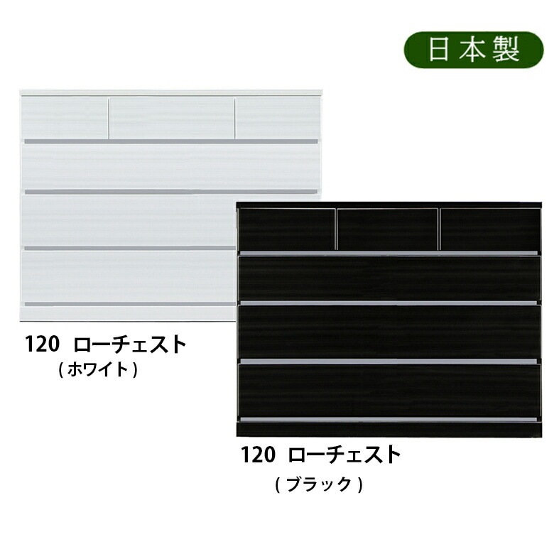 120ローチェスト 幅120cm 奥行き44cm ホワイト ブラック ハイグロスシート ツヤ有り 鏡面 日本製