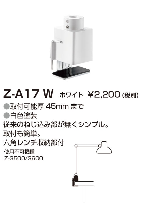 山田照明 Z-ライト(Z-LIGHT)Z-A17W(Z-A17 W) ホワイト クランプ(部品)