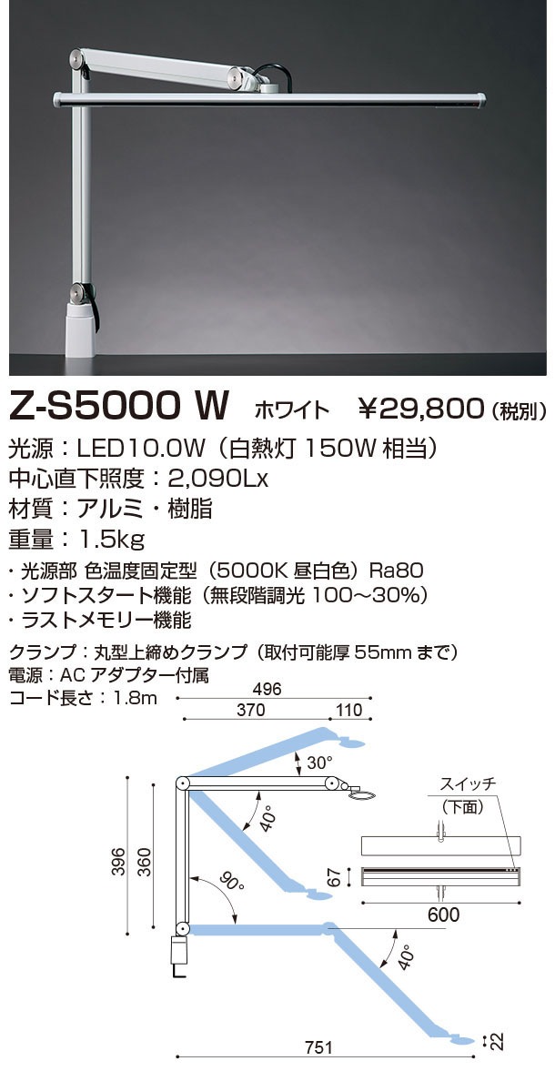 <販売終了品・後継機種あり>山田照明 Z-ライト(Z-LIGHT)Z-S5000W(Z-S5000 W) ホワイト LEDデスクス...