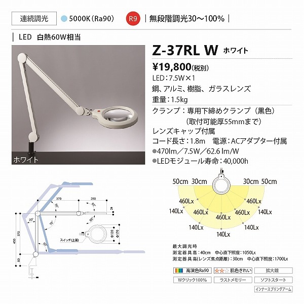 山田照明 Z-ライト(Z-LIGHT)Z-37RLW(Z-37RL W) ホワイト LEDデスクスタンド