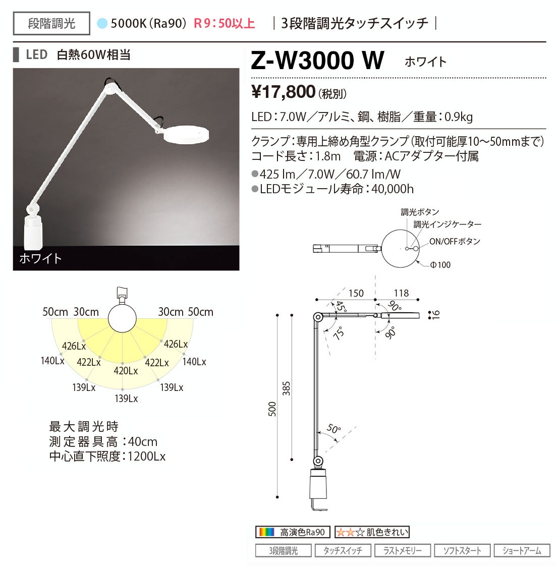 山田照明 Z-ライト(Z-LIGHT)Z-W3000W(Z-W3000 W) ホワイト LEDデスクスタンド