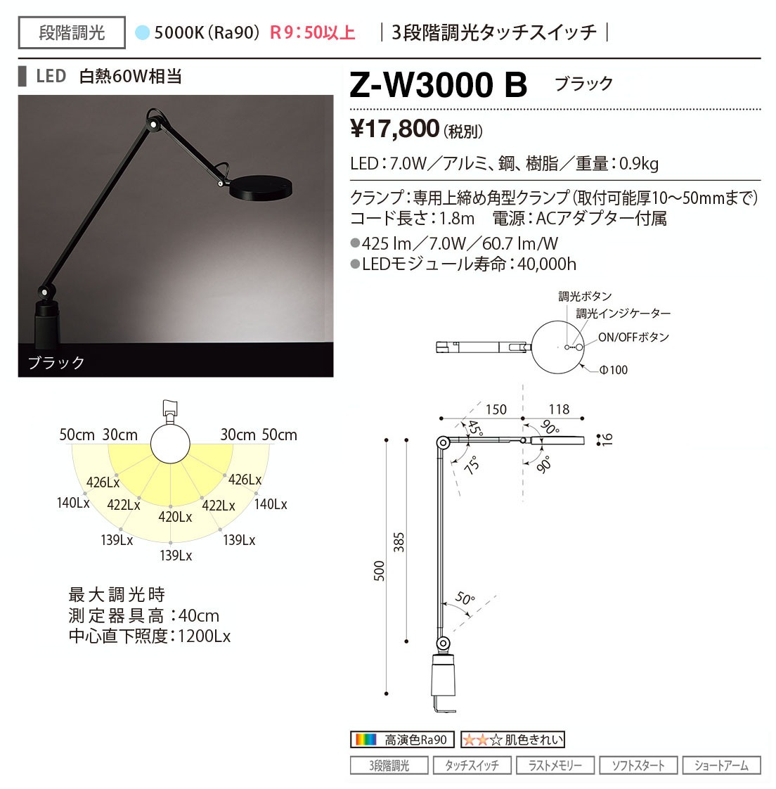 山田照明 Z-ライト(Z-LIGHT)Z-W3000B(Z-W3000 B) ブラック LEDデスクスタンド