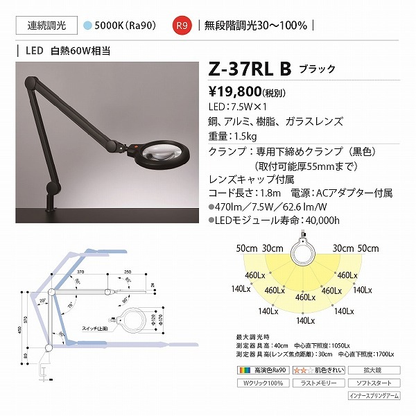 山田照明 Z-ライト(Z-LIGHT)Z-37RLB(Z-37RL B) ブラック LEDデスクスタンド