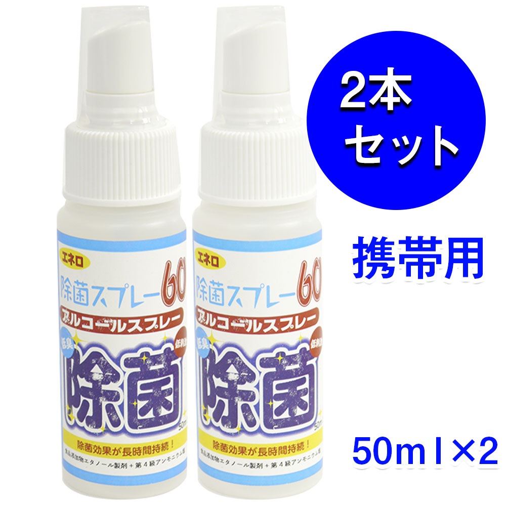 【携帯用】エネロ 除菌スプレー60(50ml)2本セット 機械器具洗浄除菌剤 食品添加物エタノール 第4級アンモニウム塩 ウィルス...
