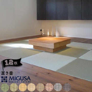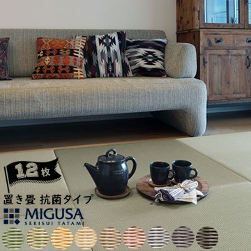 セキスイ畳 MIGUSA 抗菌タイプ 置き畳 83×83cm 厚み1.5cm ジョイントシート留め具付き 12枚