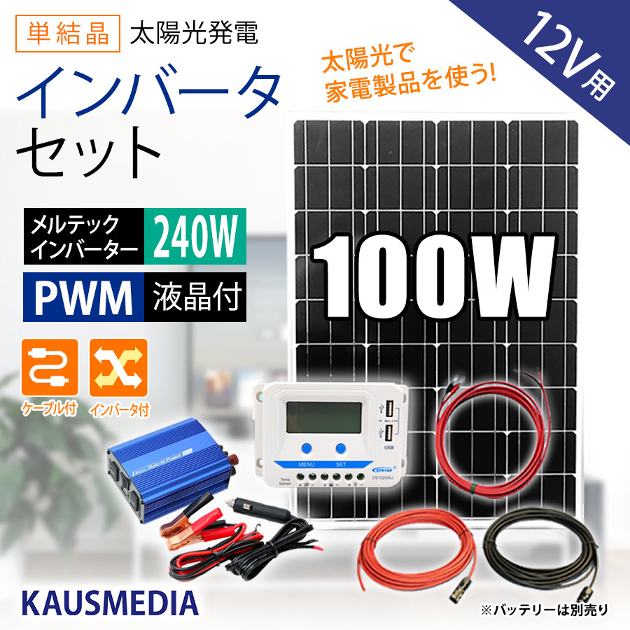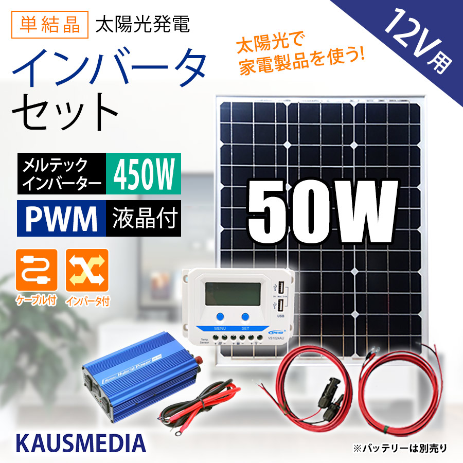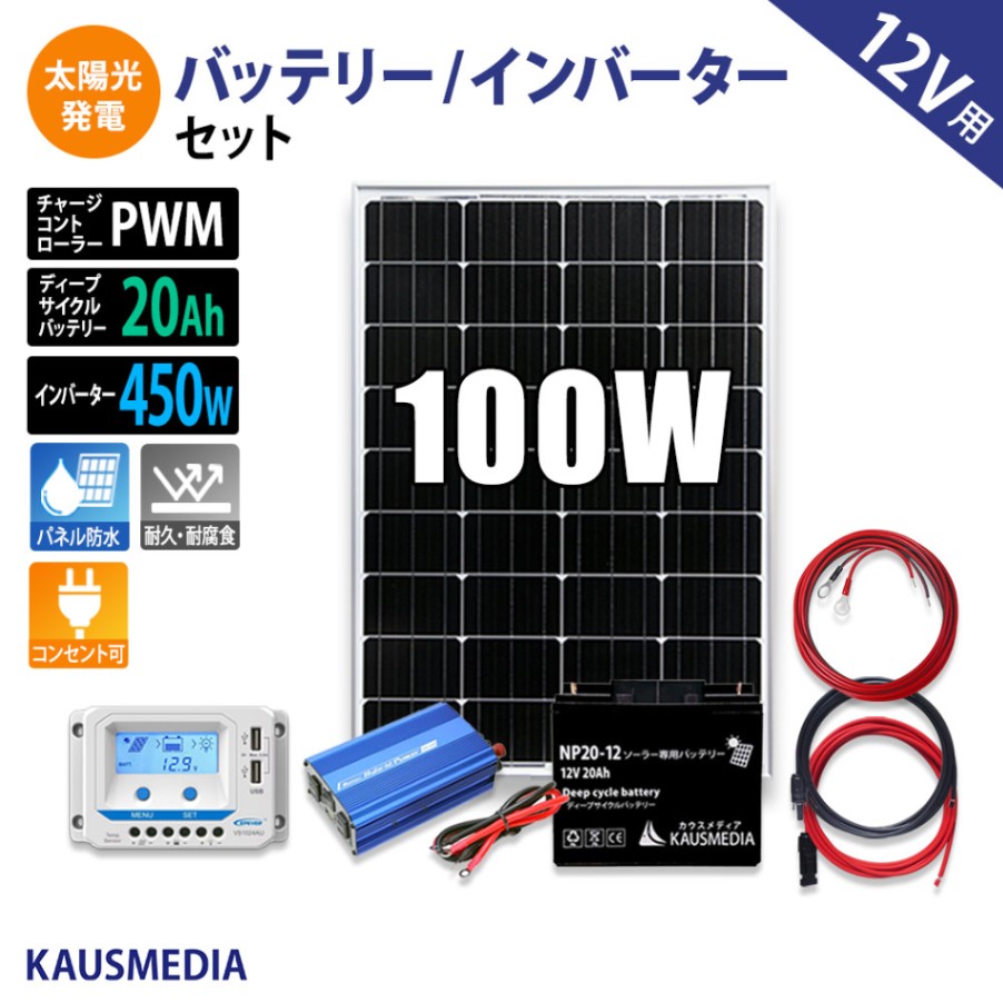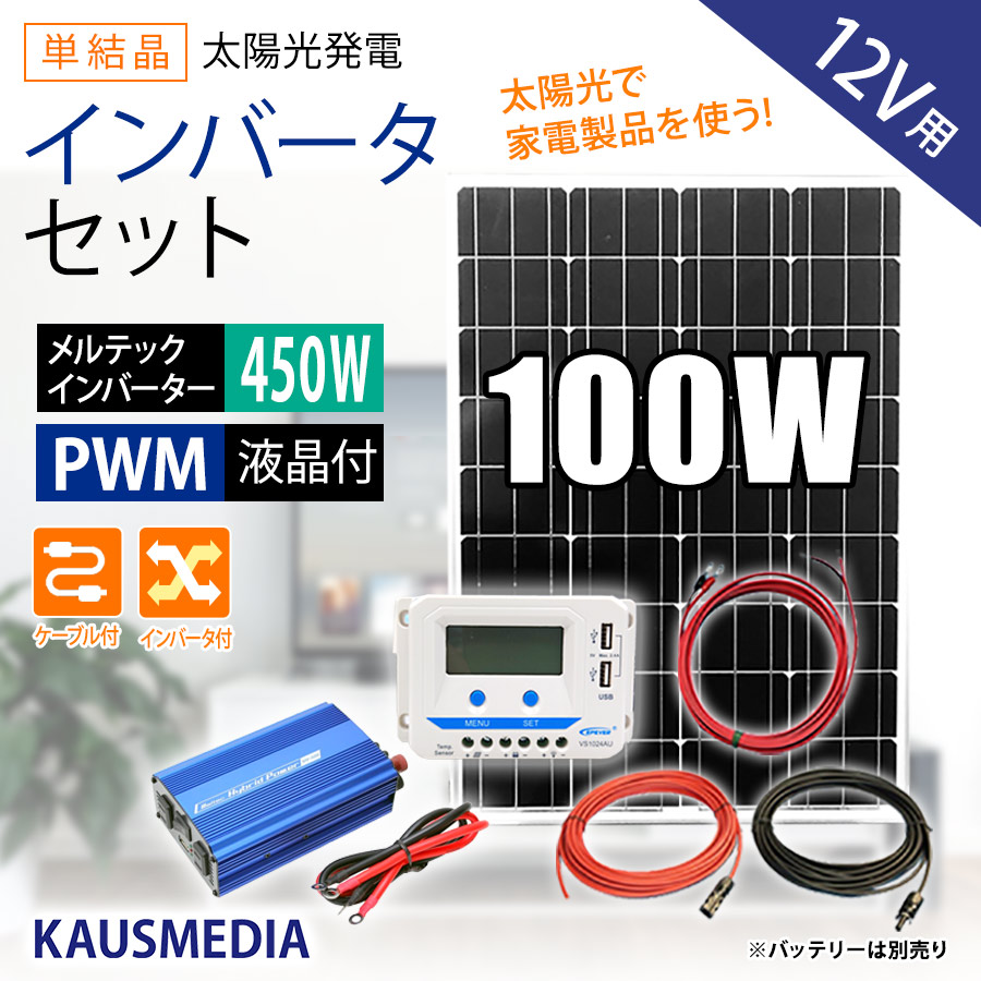 100W ソーラー充電 55Ah ディープサイクルバッテリー メルテック 450Wインバータ セット 太陽光 発電蓄電 キット