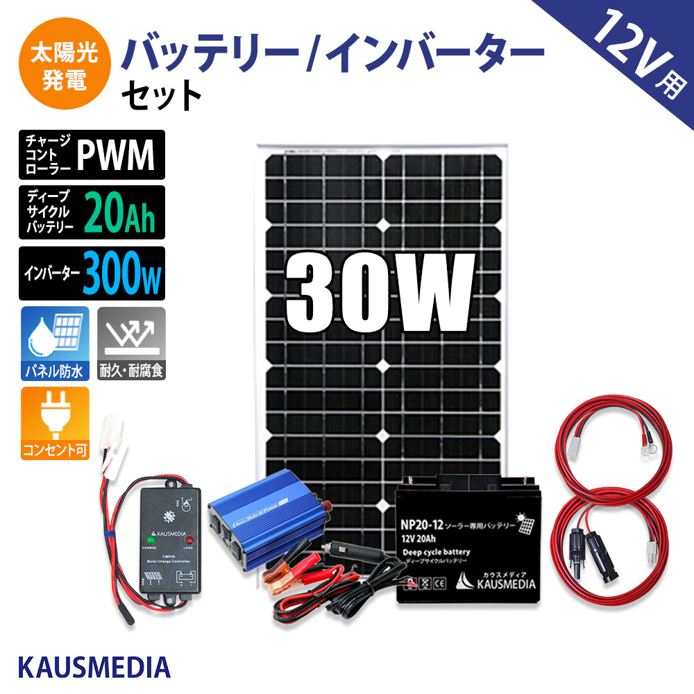 30W ソーラー充電 バッテリーセット 発電蓄電 20Ah ディープサイクルバッテリー