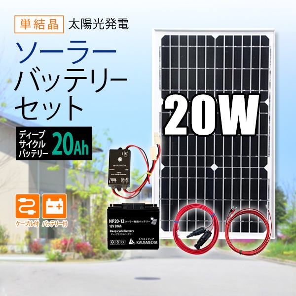 20W ソーラー充電セット 発電蓄電 20Ah ディープサイクルバッテリーセット