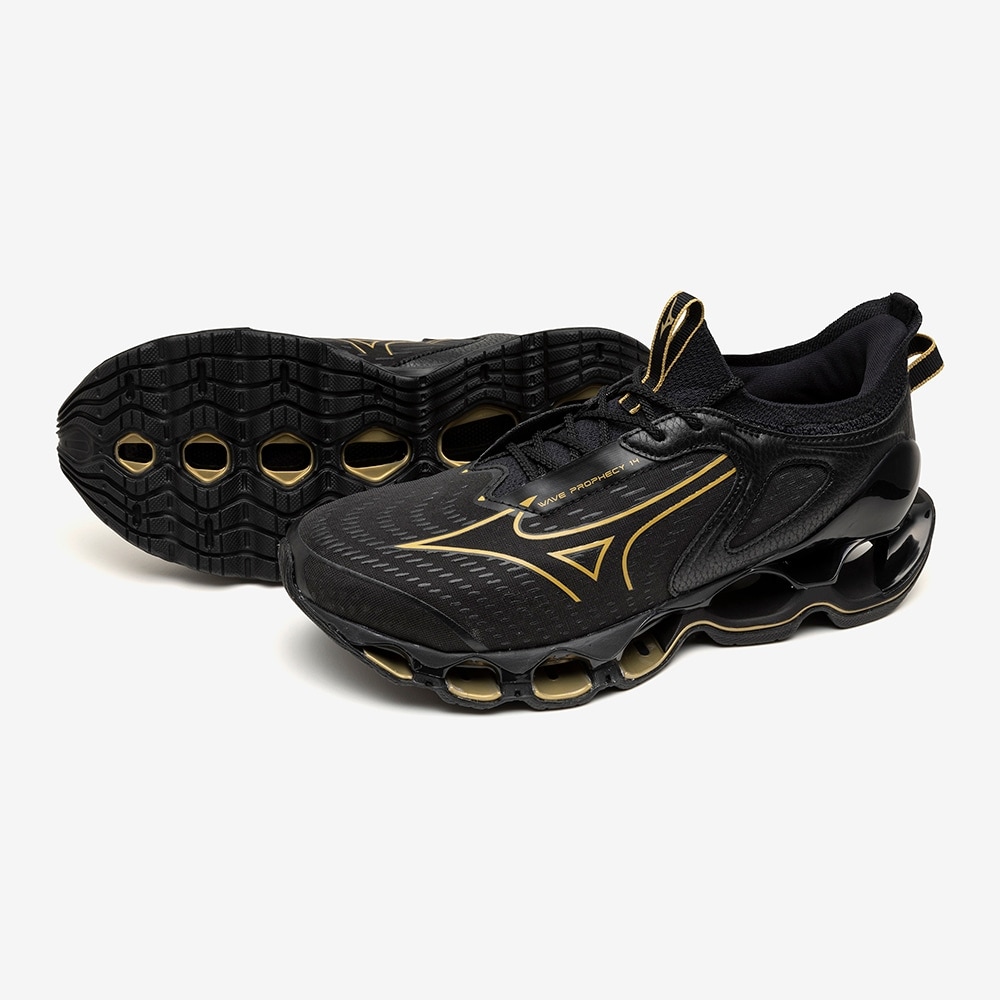 2025年秋冬 新色 ミズノ ウエーブプロフェシー14 ランニングシューズ メンズ ブラック×ゴールド J1GC255181