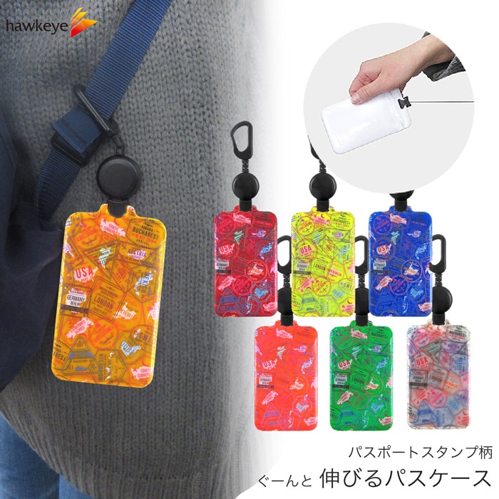 【パスポートスタンプ/のびパス】光に反射する パスケース 伸びるリール付き 選べるデザイン|電車 バス 濡れない チャック 落下防...