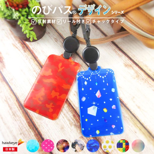【デザイン/のびパス】光に反射する パスケース 伸びるリール付き 選べるデザイン|電車 バス 濡れない チャック 落下防止 定期入...
