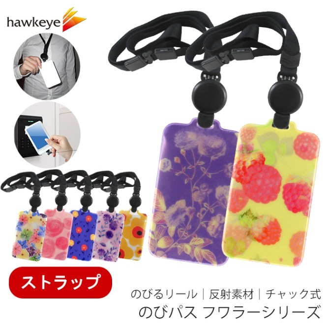 【ストラップ】【フワラー/のびパス】光に反射する ネックストラップ付属パスケース|電車 バス 濡れない チャック 落下防止 定期入...