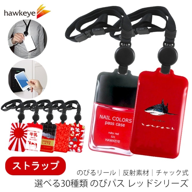 【ストラップ】【レッドシリーズ/のびパス】光に反射する ネックストラップ付属パスケース|電車 バス 濡れない チャック 落下防止 ...