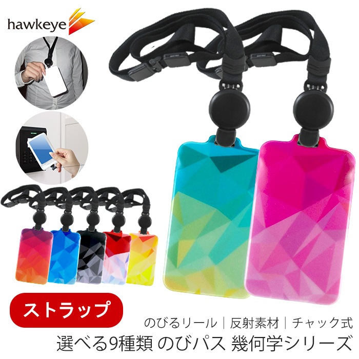 【ストラップ】【幾何学/のびパス】光に反射する ネックストラップ付属パスケース|電車 バス 濡れない チャック 落下防止 定期入れ...