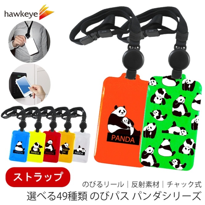 【ストラップ】【パンダ/のびパス】光に反射する ネックストラップ付属パスケース|電車 バス 濡れない チャック 落下防止 定期入れ...