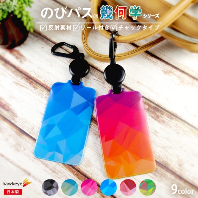 【幾何学/のびパス】光に反射する パスケース 伸びるリール付き 選べるデザイン|電車 バス 濡れない チャック 落下防止 定期入れ...