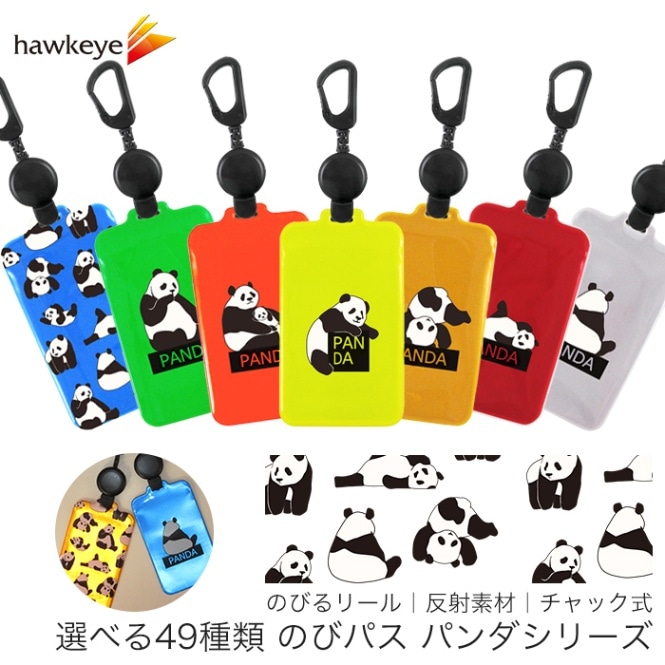 【パンダ/のびパス】光に反射する パスケース 伸びるリール付き 選べるデザイン|電車 バス 濡れない チャック 落下防止 定期入れ...