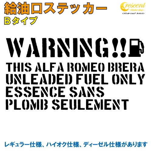 アルファロメオ ブレラ : ALFA ROMEO BRERA 給油口ステッカー Bタイプ 全26色 【車 フューエルステッカー シ...