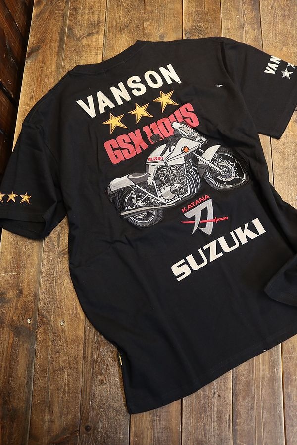 VANSON×SUZUKIコラボ SMV-2402 天竺半袖Tee KATANA GSX1100S カタナ 刺繍Tシャツ ブラッ...