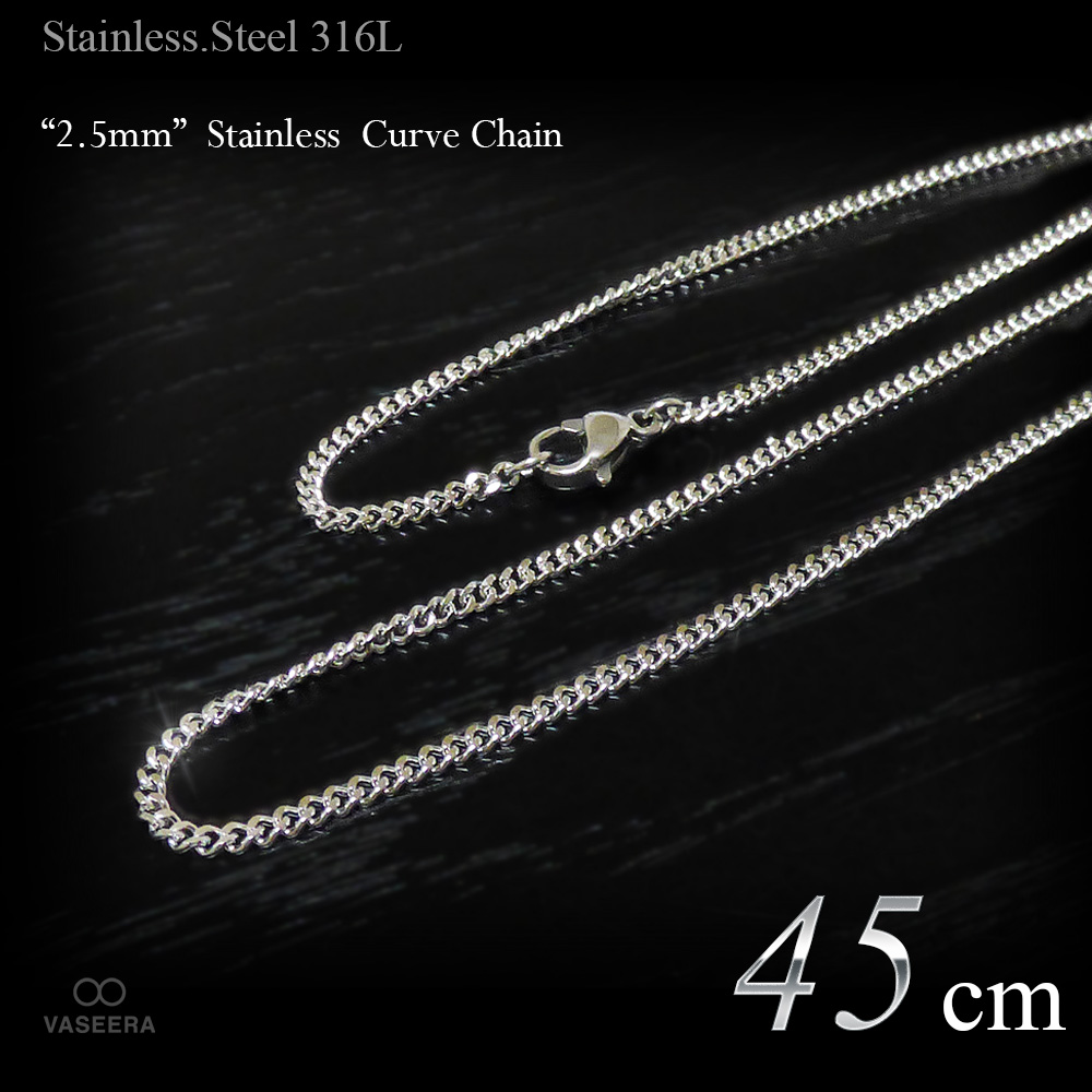 2.5mm幅 ステンレス 2面カット喜平 チェーン 45cm(ショートサイズ) 【ステンレススチール316L(SUS316L) /...