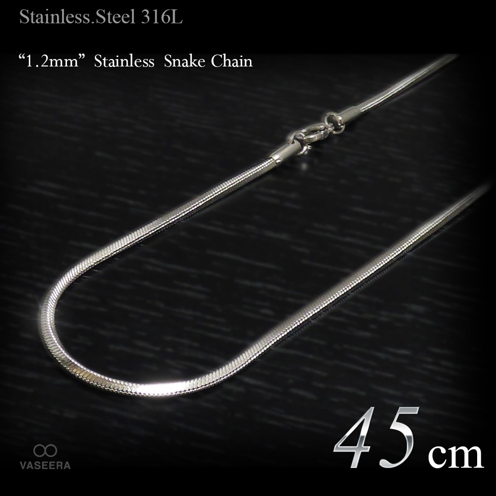 \"細身\"1.2mm幅 ステンレス スネーク・チェーン 45cm(ショートサイズ) 【ステンレススチール316L(SUS316L...