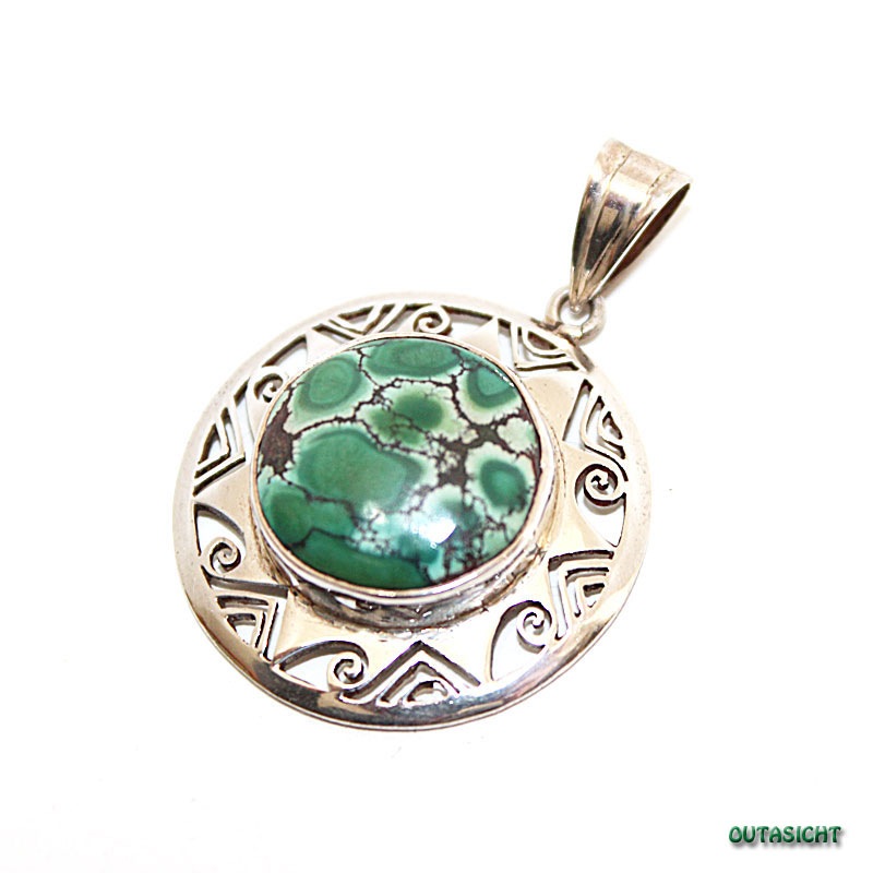チベタンターコイズ カーラチャクラ シルバーペンダントトップ ネパール SS-114