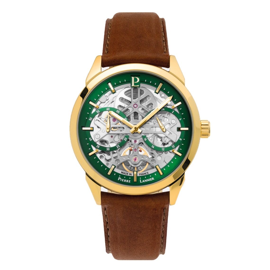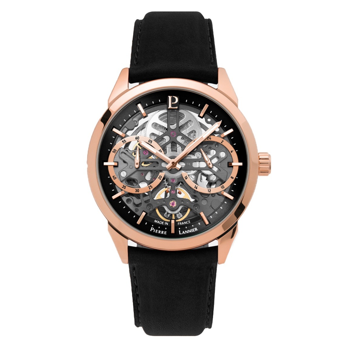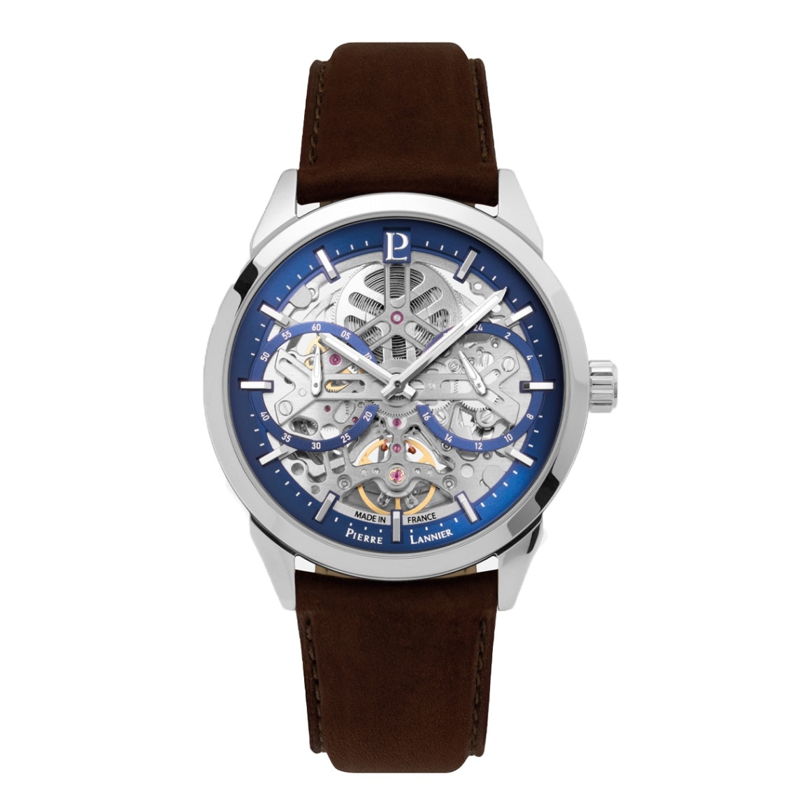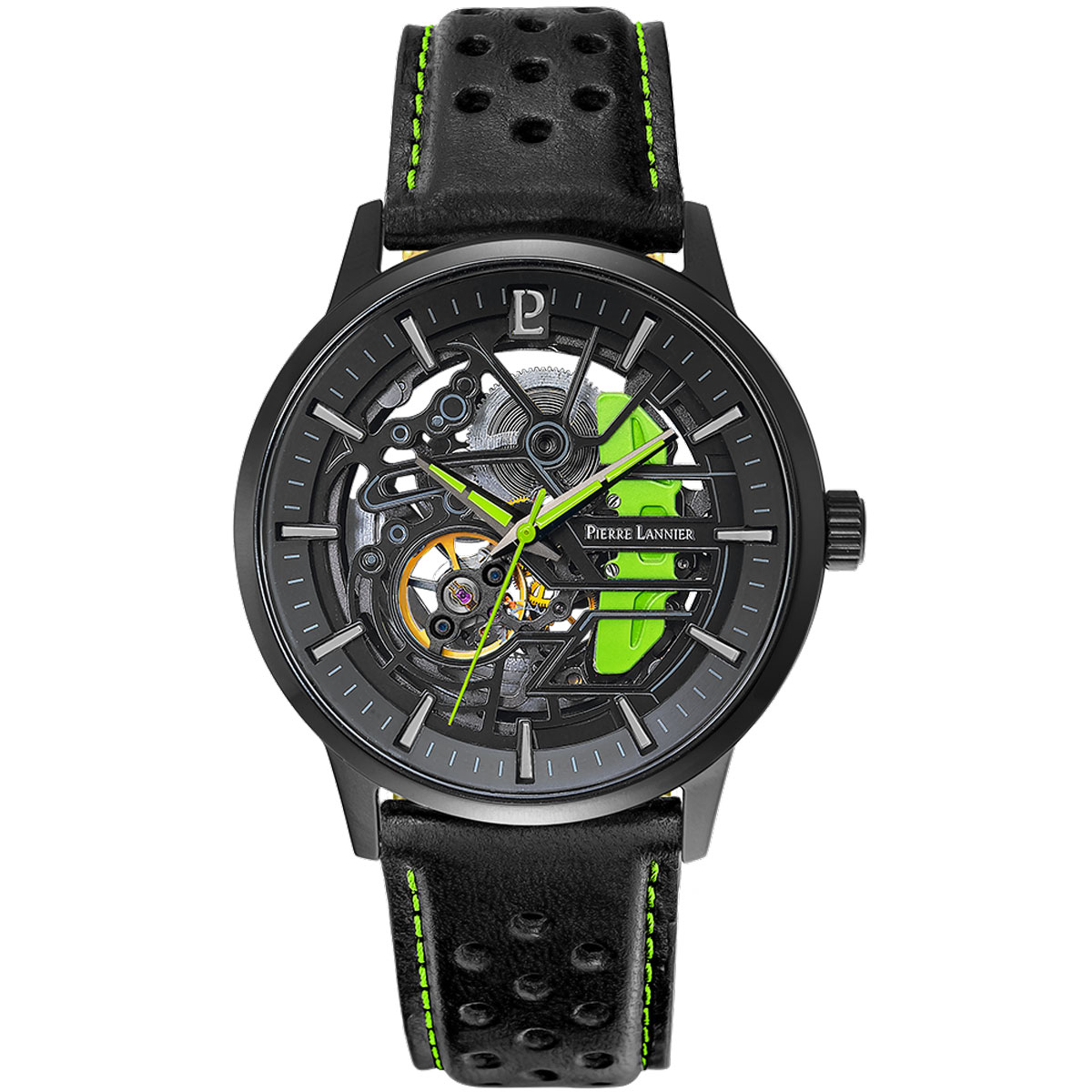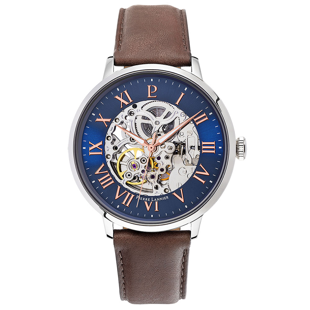 ピエールラニエ×エリゼ 自動巻き メンズ 腕時計 スケルトン 革ベルト コラボ トリコロール