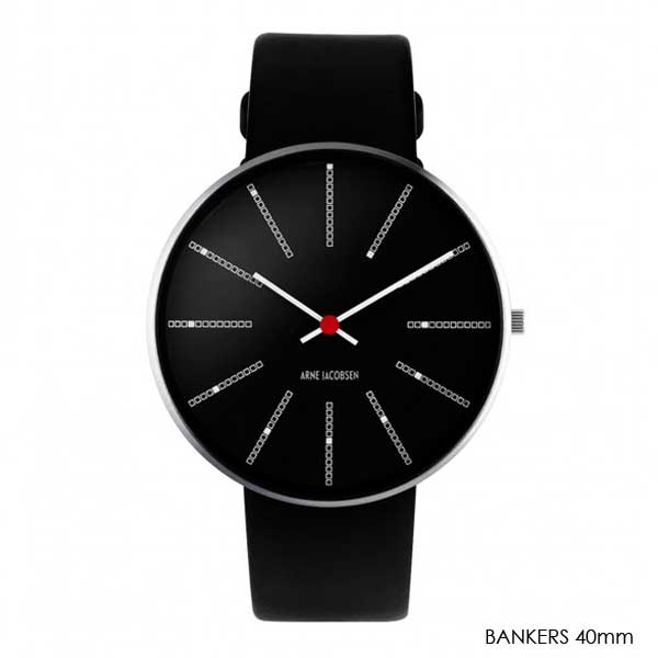 アルネヤコブセン 腕時計・Bankers Black Face バンカーズ レザーストラップ 40mm ARNE JACOBSEN...