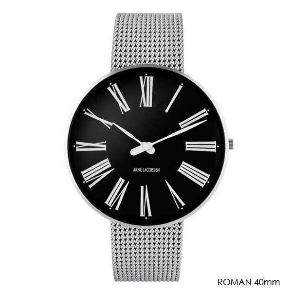 アルネヤコブセン・腕時計 ROMAN Black Face ローマン 40mm シルバーメッシュストラップ ARNE JACOBS...